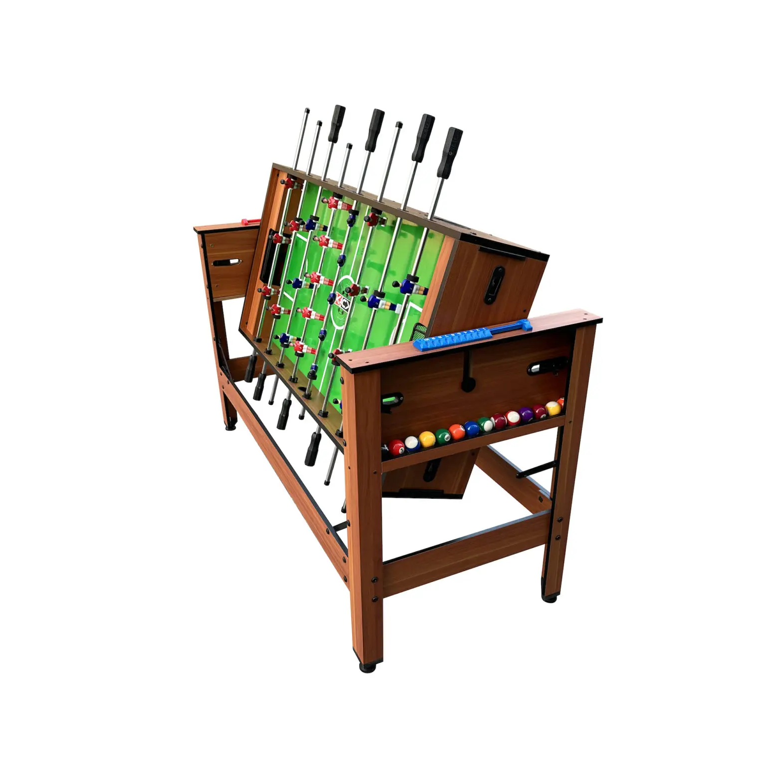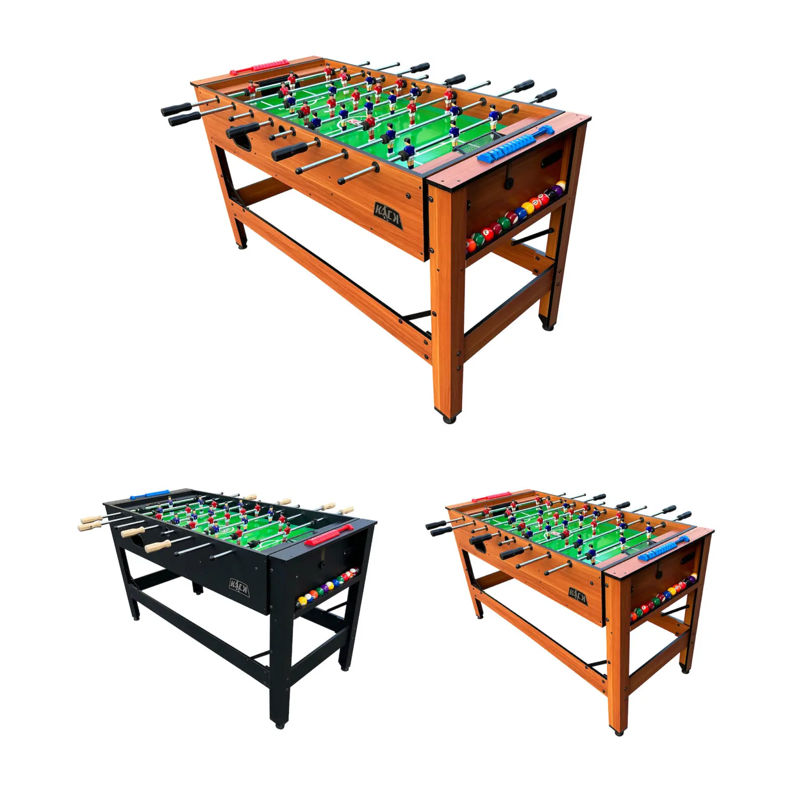 Discover the incredible craftsmanship of the KICK Twain 48" 2-in-1 Multi Game Table. A genuine masterpiece of multi-game innovation, designed to elevate your game room with exceptional excellence. Enjoy exciting billiards/pool or foosball sessions with your loved ones, all conveniently built into this single table to save space. The square leg design and 42-mm plastic leg levelers ensure a strong structure and a perfectly even playing surface. With its durable construction, this game table ensures hours of captivating play, with each match delivering an extraordinary gaming experience. Moreover, its thoughtful design caters to players of all ages, making it a versatile addition suitable for both kids and adults.